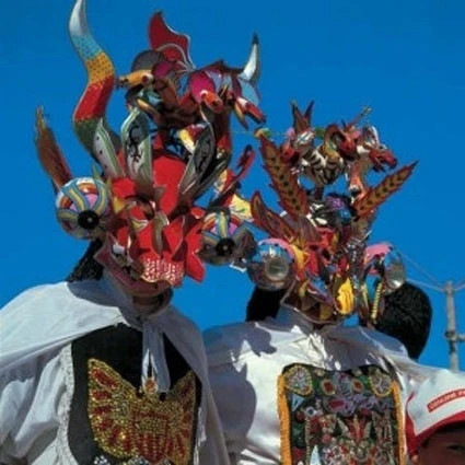máscara en forma de toro cada uno de ellos.